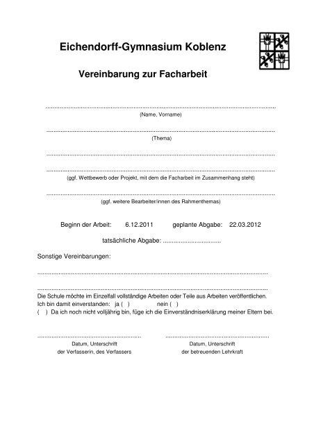 Formular Zur Facharbeit Eichendorff Gymnasium