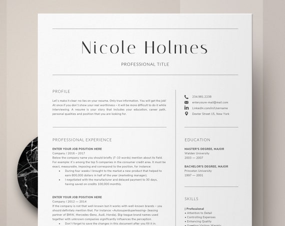 Beste Lebenslauf Vorlagen Fur Jede Aufgabe Position Drei Etsy